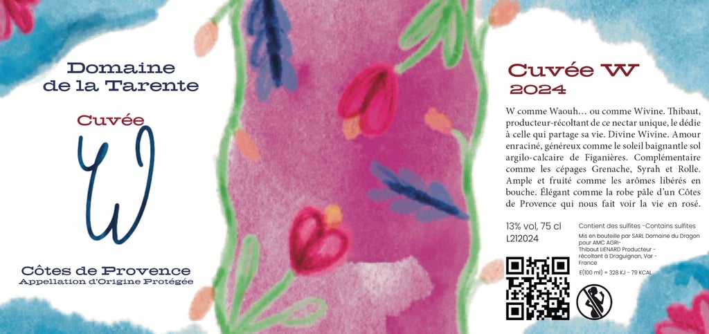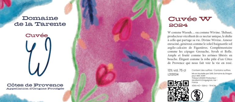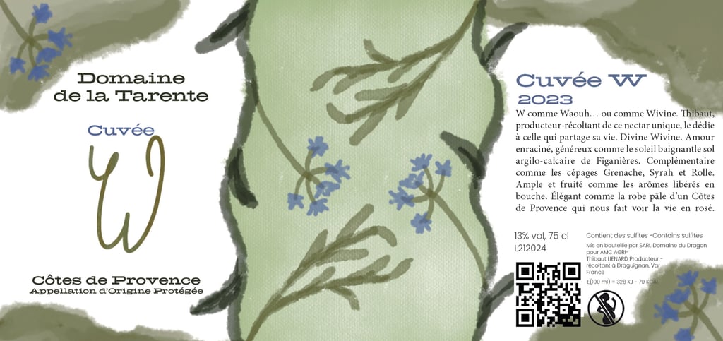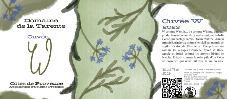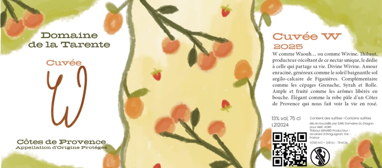 Le vigneron souhaite concevoir une série d’étiquettes pour les millésimes 2023, 2024 et 2025 de sa Cuvée W. Chaque étiquette devra illustrer les arômes caractéristiques du vin tout en reflétant fidèlement les valeurs qui lui sont chères.